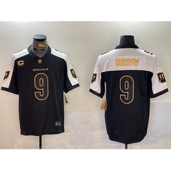 Men's Cincinnati Bengals #9 Joe Burrow Black Gold 2024 F.U.S.E With 4-Star C Limited Stitched Football Jersey
