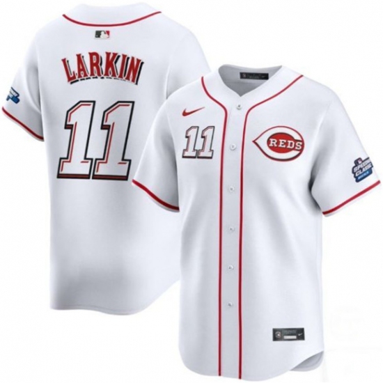 Men's Cincinnati Reds #11 Barry Larkin White 2025 Speedway Classic Home Limited Stitched Baseball Jersey