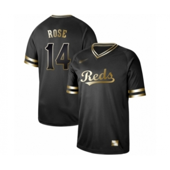 Men's Cincinnati Reds #14 Pete Rose Authentic Black Gold Fashion Baseball Jersey