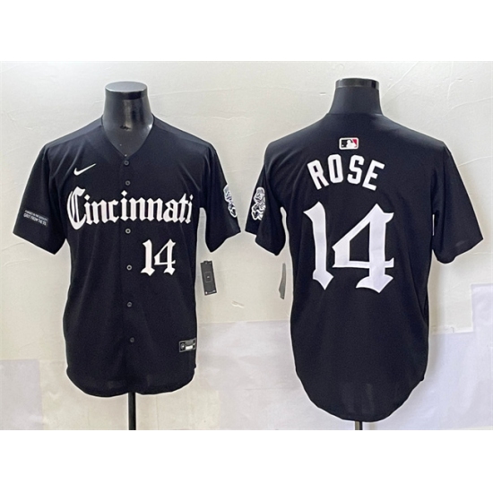 Men's Cincinnati Reds #14 Pete Rose Black 2023 City Connect Cool Base Stitched Jersey 1