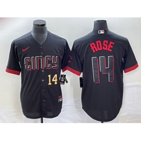 Men's Cincinnati Reds #14 Pete Rose Number Black 2023 City Connect Cool Base Stitched Jersey 1
