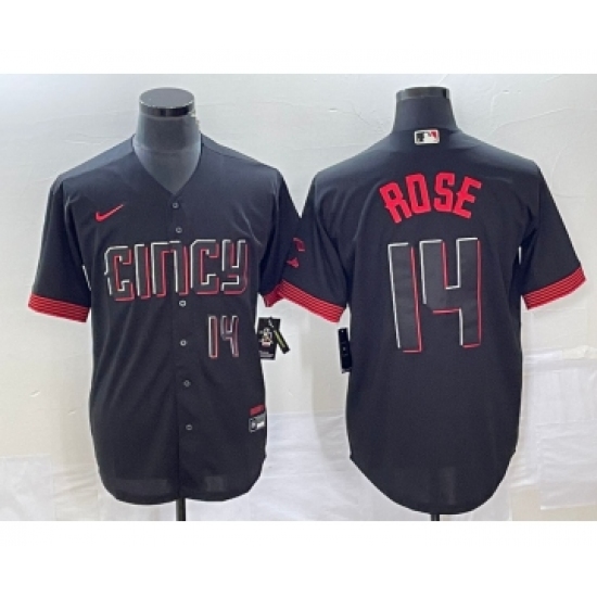 Men's Cincinnati Reds #14 Pete Rose Number Black 2023 City Connect Cool Base Stitched Jersey 1