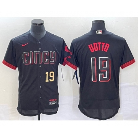 >Men's Cincinnati Reds #19 Joey Votto Number Black 2023 City Connect Flex Base Stitched Jersey