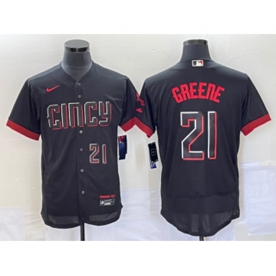 Men's Cincinnati Reds #21 Hunter Greene Number Black 2023 City Connect Flex Base Stitched Jersey 2