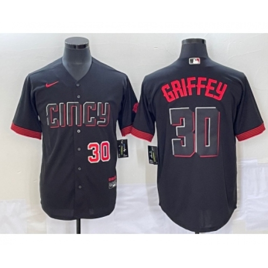 Men's Cincinnati Reds #30 Ken Griffey Jr Black 2023 City Connect Flex Base Stitched Jersey 1