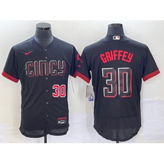 Men's Cincinnati Reds #30 Ken Griffey Jr Number Black 2023 City Connect Flex Base Stitched Jersey 1