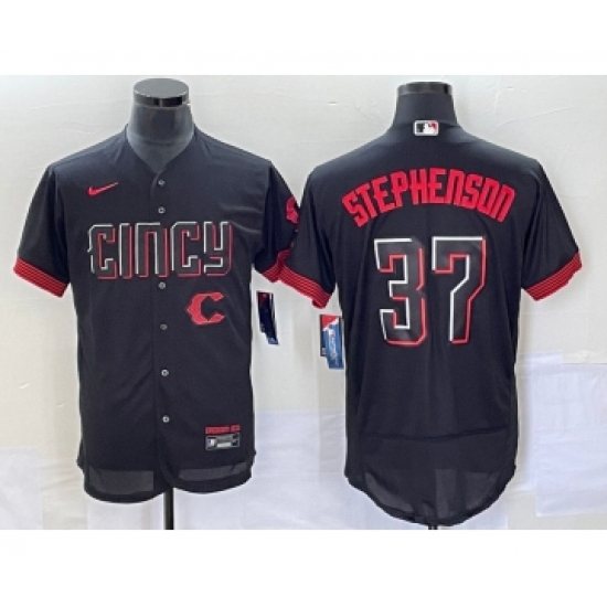 Men's Cincinnati Reds #37 Tyler Stephenson Black 2023 City Connect Flex Base Stitched Jersey