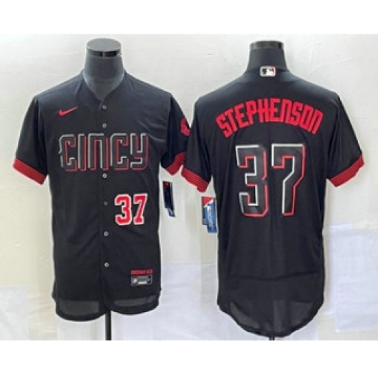 Men's Cincinnati Reds #37 Tyler Stephenson Number Black 2023 City Connect Flex Base Stitched Jersey 2