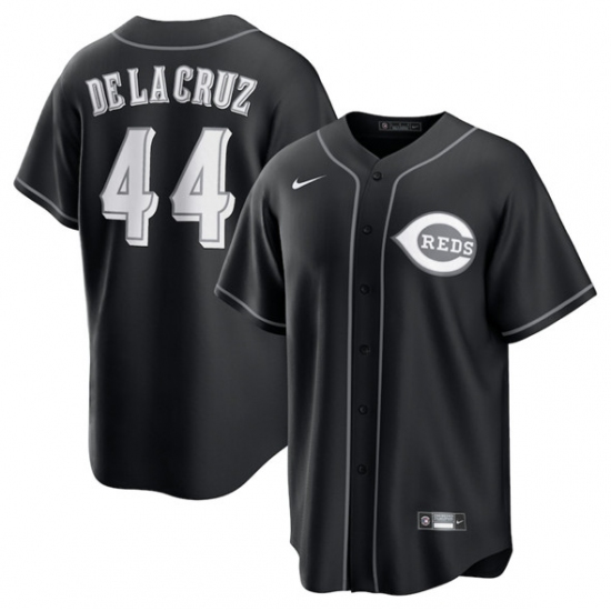 Men's Nike Cincinnati Reds #44 Elly De La Cruz Number Black Cool Base Stitched Baseball Jersey