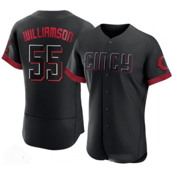 Men's Cincinnati Reds #55 Brandon Williamson Black 2023 City Connect Cool Base Stitched Jersey