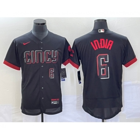 >Men's Cincinnati Reds #6 Jonathan India Number Black 2023 City Connect Flex Base Stitched Jersey 2