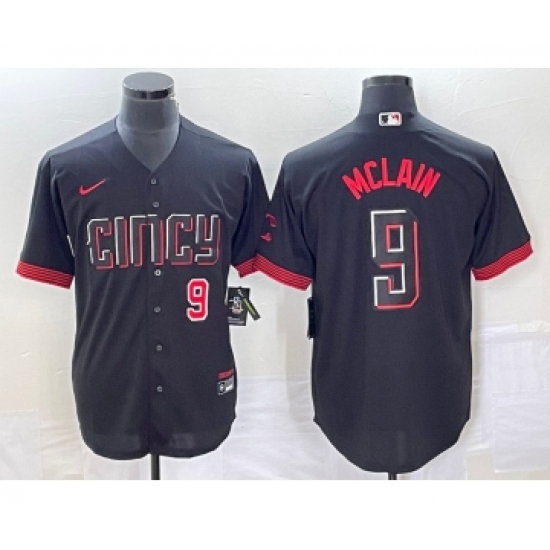 Men's Cincinnati Reds #9 Matt McLain Number Black 2023 City Connect Cool Base Stitched Jersey 1