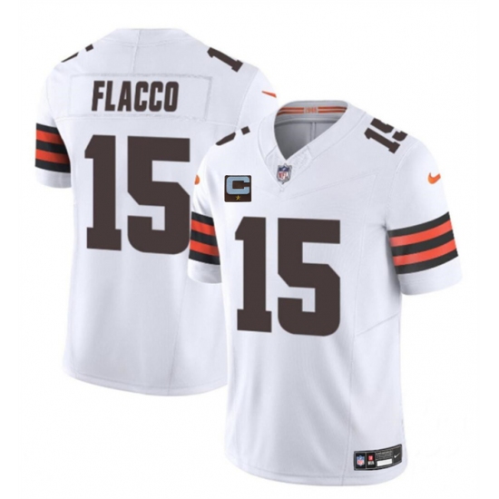 Men's Cleveland Browns #15 Joe Flacco White 2025 F.U.S.E. With 1-Star C Vapor Limited Stitched Football Jersey