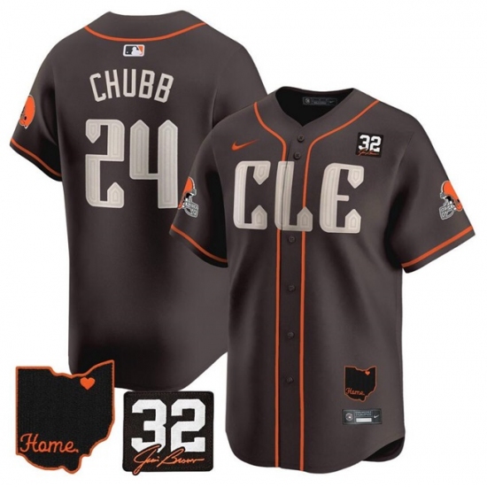 Men's Cleveland Browns #24 Nick Chubb Brown With Jim Brown Memorial & Home Vapor Premier Limited Stitched Baseball Jersey