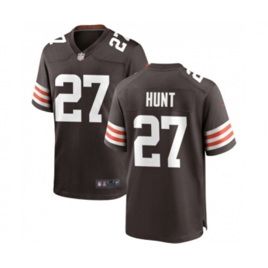 >Men's Cleveland Browns #27 Kareem Hunt Brown Stitched Game Jersey