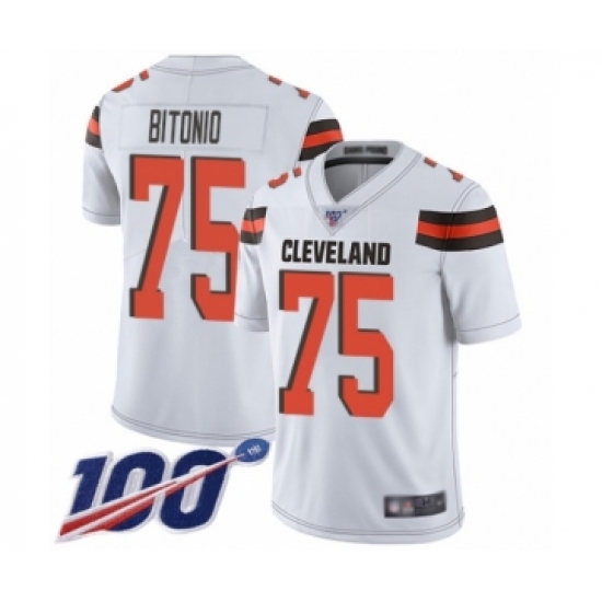 >Men's Cleveland Browns #75 Joel Bitonio White Vapor Untouchable Limited Player 100th Season Football Jersey