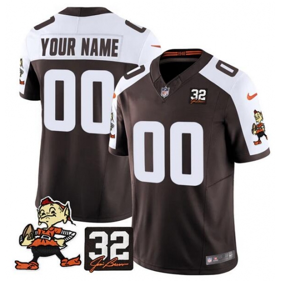 Men's Cleveland Browns Active Player Custom Brown Alternate F.U.S.E. #32 Jim Brown Memorial Patch Vapor Limited Stitched Football Jersey