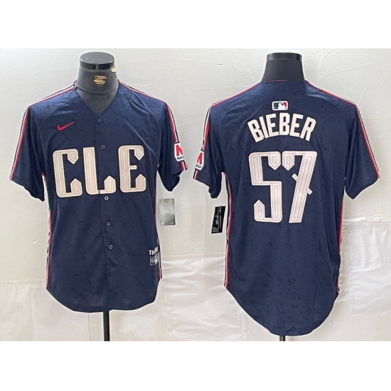 Men's Cleveland Guardians #57 Shane Bieber Navy 2024 City Connect Limited Stitched Jersey