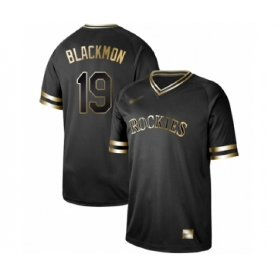 >Men's Colorado Rockies #19 Charlie Blackmon Authentic Black Gold Fashion Baseball Jersey
