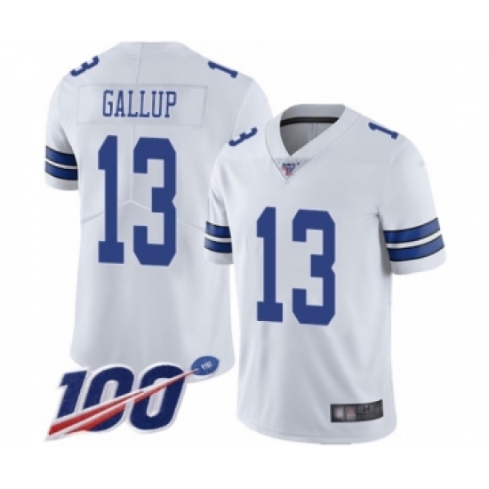Men's Dallas Cowboys #13 Michael Gallup White Vapor Untouchable Limited Player 100th Season Football Jersey