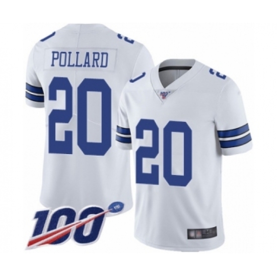 >Men's Dallas Cowboys #20 Tony Pollard White Vapor Untouchable Limited Player 100th Season Football Jersey
