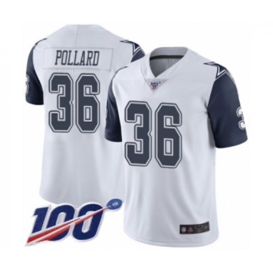 Men's Dallas Cowboys #36 Tony Pollard Limited White Rush Vapor Untouchable 100th Season Football Jersey