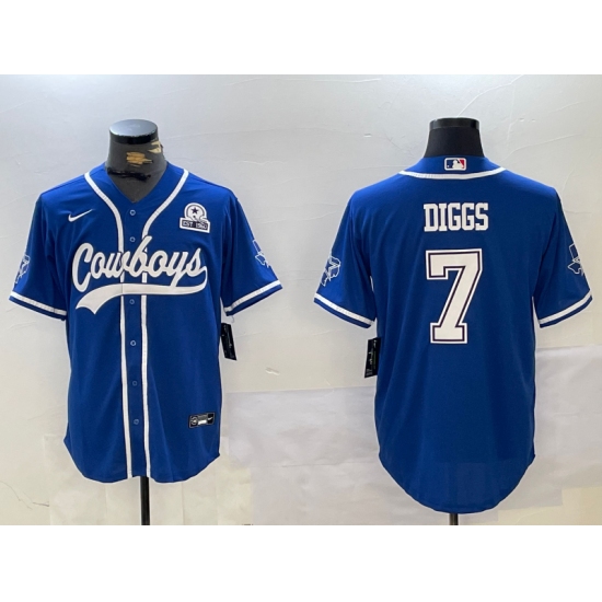 Men's Dallas Cowboys #7 Trevon Diggs Light Blue With 1960 Cool Base Stitched Baseball Jersey