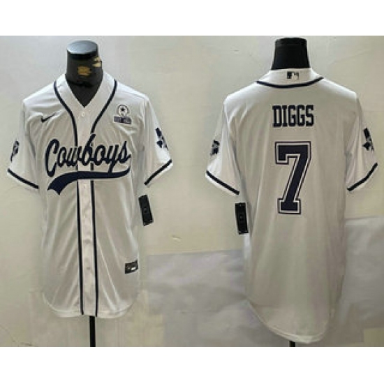 >Men's Dallas Cowboys #7 Trevon Diggs White With 1960 Cool Base Stitched Baseball Jersey