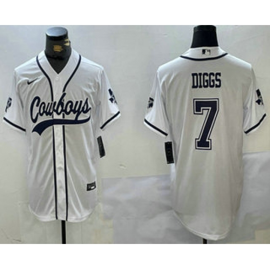 Men's Dallas Cowboys #7 Trevon Diggs White With Navy Name Cool Base Stitched Baseball Jersey