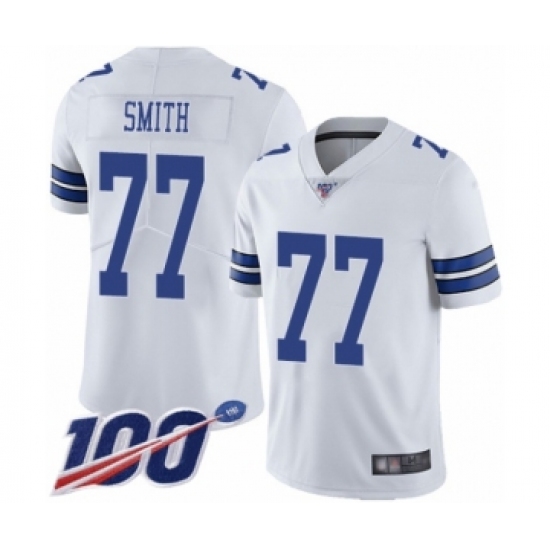 >Men's Dallas Cowboys #77 Tyron Smith White Vapor Untouchable Limited Player 100th Season Football Jersey