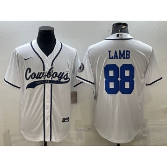 >Men's Dallas Cowboys #88 CeeDee Lamb White With Patch Cool Base Stitched Baseball Jersey