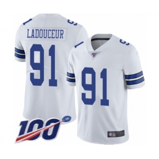>Men's Dallas Cowboys #91 L. P. Ladouceur White Vapor Untouchable Limited Player 100th Season Football Jersey