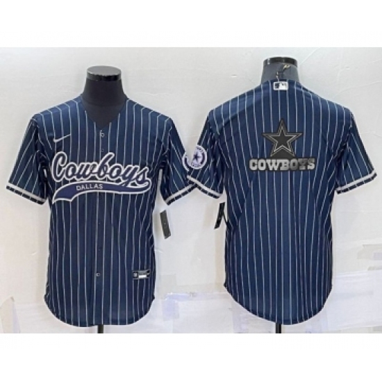 Men's Dallas Cowboys Navy Team Big Logo With Patch Cool Base Stitched Baseball Jersey