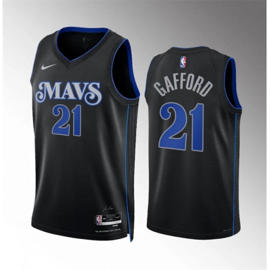 Men's Dallas Mavericks #21 Daniel Gafford Black 2023-24 City Edition Stitched Basketball Jersey