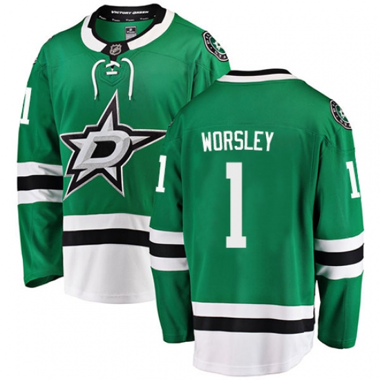 Men's Dallas Stars #1 Gump Worsley Fanatics Branded Green Home Breakaway NHL Jersey