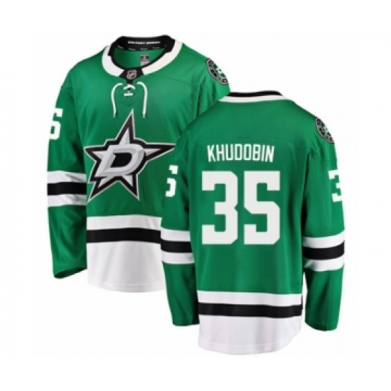 >Men's Dallas Stars #35 Anton Khudobin Authentic Green Home Fanatics Branded Breakaway NHL Jersey