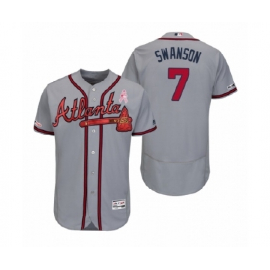 Men's Dansby Swanson Atlanta Braves #7 Gray 2019 Mothers Day Flex Base Authentic Jersey