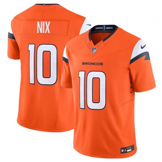 Men's Denver Broncos #10 Bo Nix Orange 2024 F.U.S.E. Vapor Limited Football Stitched Jersey