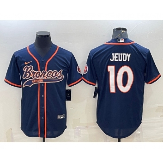 >Men's Denver Broncos #10 Jerry Jeudy Navy Blue Stitched Cool Base Nike Baseball Jersey