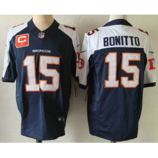 >Men's Denver Broncos #15 Nik Bonitto Navy Blue C Thanksgiving FUSE Vapor Jersey
