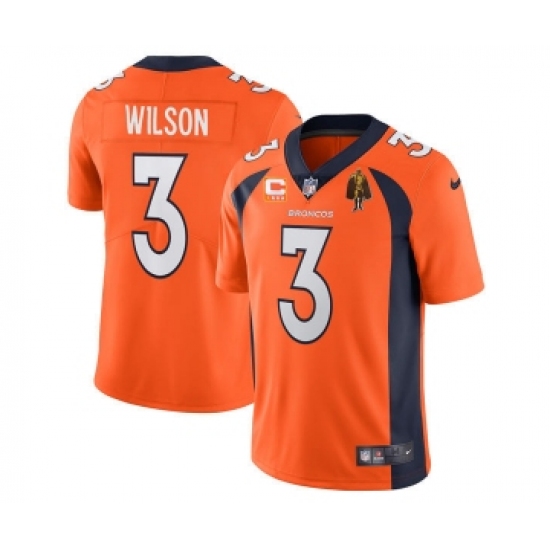 Men's Denver Broncos #3 Russell Wilson Orange With C Patch & Walter Payton Patch Vapor Untouchable Limited Stitched Jersey