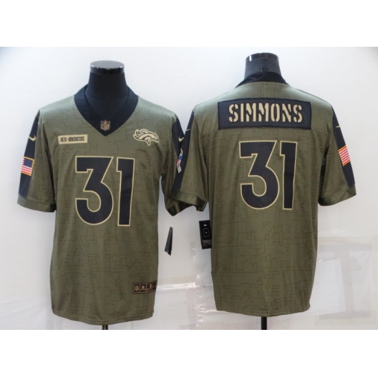 >Men's Denver Broncos #31 Justin Simmons Nike Olive 2021 Salute To Service Limited Player Jersey