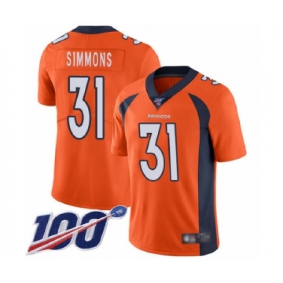 Men's Denver Broncos #31 Justin Simmons Orange Team Color Vapor Untouchable Limited Player 100th Season Football Jersey