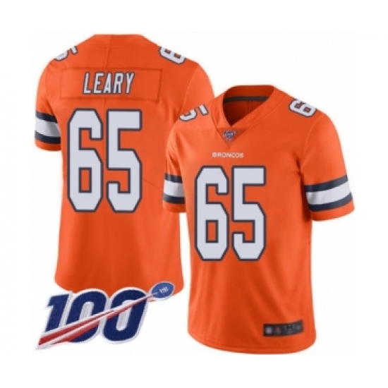 >Men's Denver Broncos #65 Ronald Leary Limited Orange Rush Vapor Untouchable 100th Season Football Jersey