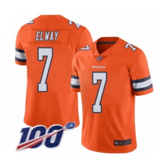 >Men's Denver Broncos #7 John Elway Limited Orange Rush Vapor Untouchable 100th Season Football Jersey