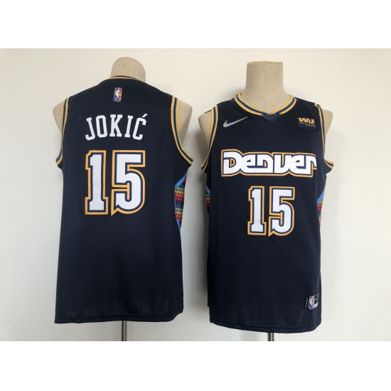 >Men's Denver Nuggets #15 Nikola Jokic Black City Edition Stitched Basketball Jersey