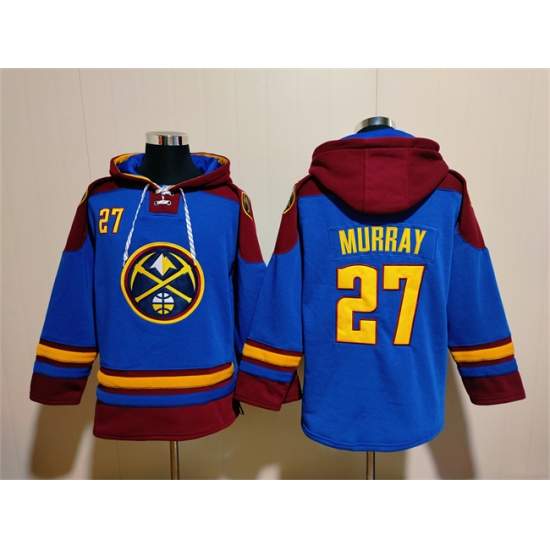 >Men's Denver Nuggets #27 Jamal Murray Blue Red Lace-Up Pullover Hoodie