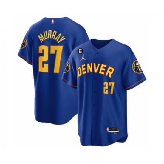 >Men's Denver Nuggets #27 Jamal Murray Blue With No.6 Cool Base Stitched Jersey