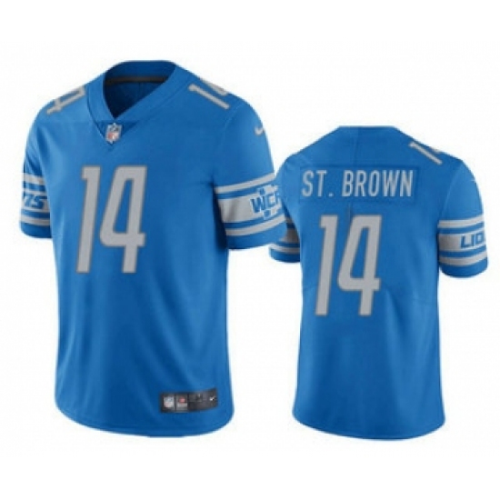 >Men's Detroit Lions #14 Amon Ra St Brown Blue Vapor Untouchable Limited Stitched Jersey