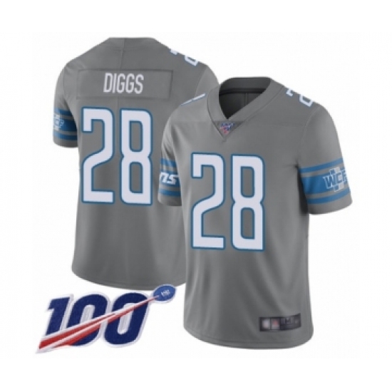 >Men's Detroit Lions #28 Quandre Diggs Limited Steel Rush Vapor Untouchable 100th Season Football Jersey